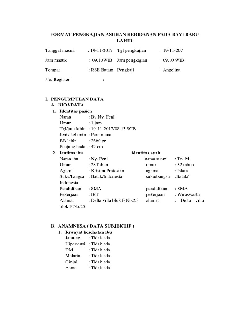 Format Pengkajian Asuhan Kebidanan Pada Bayi Baru Lahir