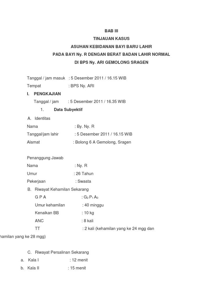 Setelah mempelajari tentang Askeb Bayi Baru Lahir Normal 7 Langkah Varney, Banyak perihal yang dapat diperhatikan oleh orangtua sementara memelihara kesegaran anak. Mulai dari asupan nutrisi, aktivitas fisik, hingga pola asuh anak menentukan kesehatan anak. Hal ini terjadi gara-gara terhadap pas ini moment 1000 hari kehidupan pertamanya. Di usia ini, segala hal yang didapat mempengaruhi tumbuh kembangnya di lantas hari, termasuk asupan nutrisi. Itulah mengapa umumnya orangtua melakukan yang terbaik demi tumbuh kembang dan kesehatannya yang optimal. Askeb bayi baru lahir normal 7 langkah varney bbl askeb bayi baru lahir normal askeb bayi baru lahir normal askeb ibu bersalin normal varney doc contoh kasus 7 langkah varney yoan andrila16 academia edu asuhan kebidanan pada bayi baru lahir manajemen asuhan kebidanan bayi baru lahir fisiologis 61361586 askeb ibu bersalin normal varney format pengkajian asuhan kebidanan pada bayi baru lahir